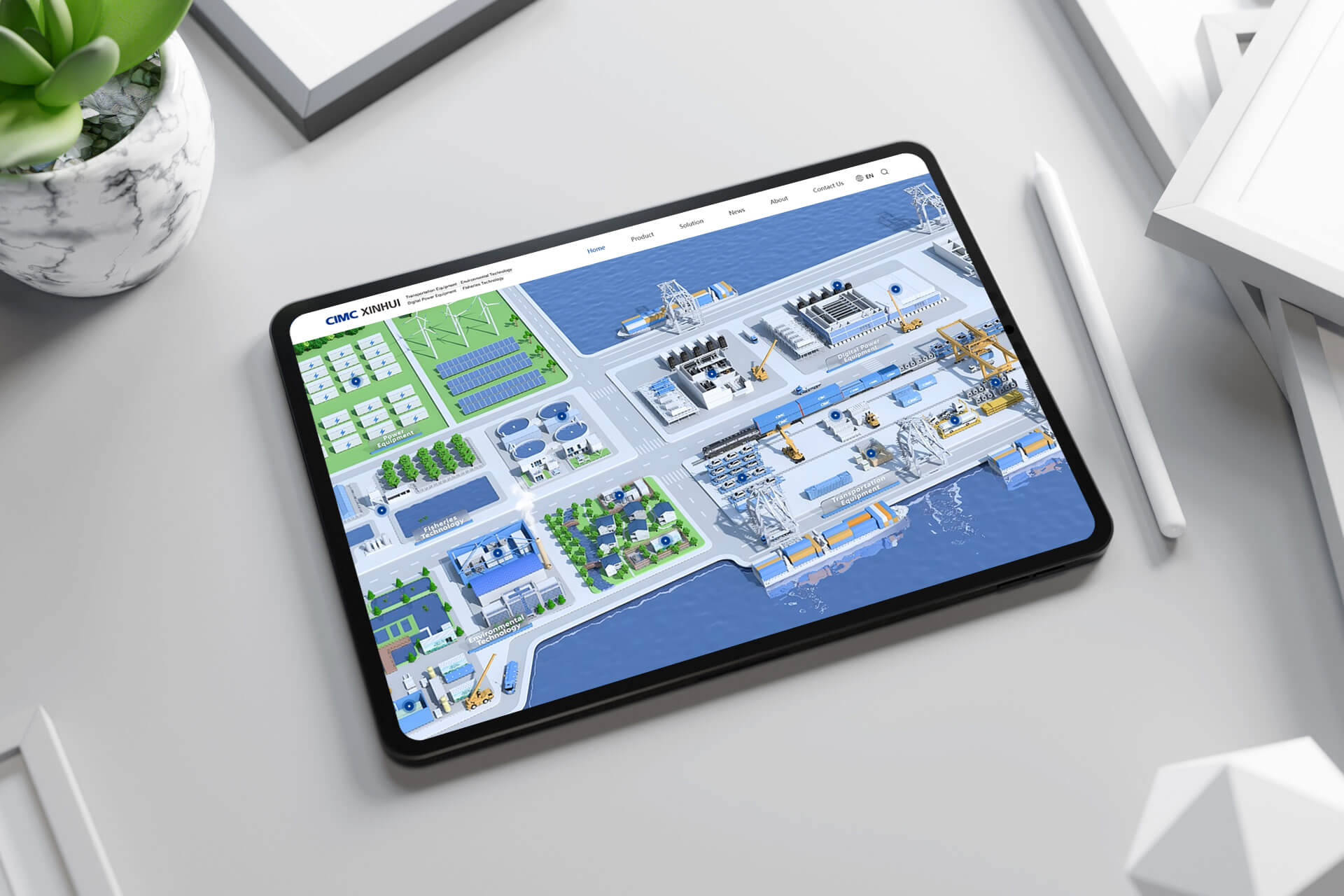 新会中集官网的设计以现代、简洁为核心,通过精心策划与布局,为用户带来耳目一新的浏览体验。首页海报以直观的C4D建模场景展示新会中集在物流装备、能源装备以及环保集成装备等领域的业务场景。清晰的导航栏设计,让用户能够轻松访问产品系列、解决方案、新闻资讯等板块,享受便捷高效的在线体验。